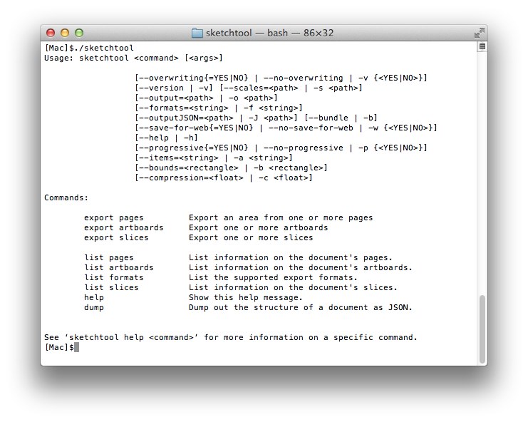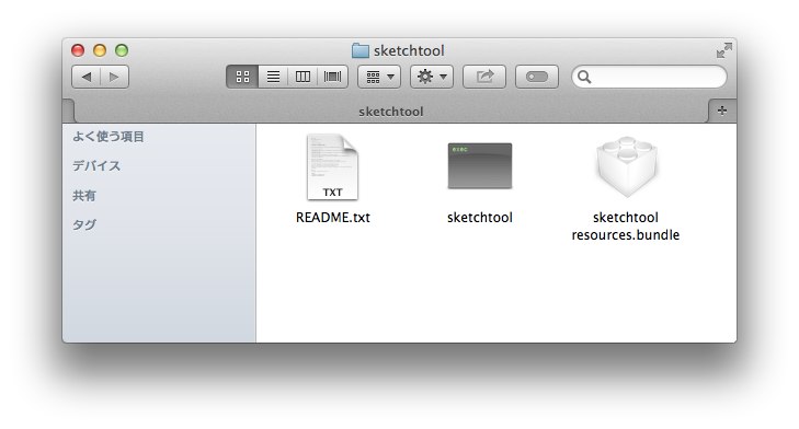 使い方はBohemian CodingのサイトからSketchtoolをダウンロード、中には「README.txt」「sketchtool」「sketchtool resources.bundle」があるのでsketchtoolとsketchtool resources.bundleを/usr/local/binなどパスの通った場所へコピー。