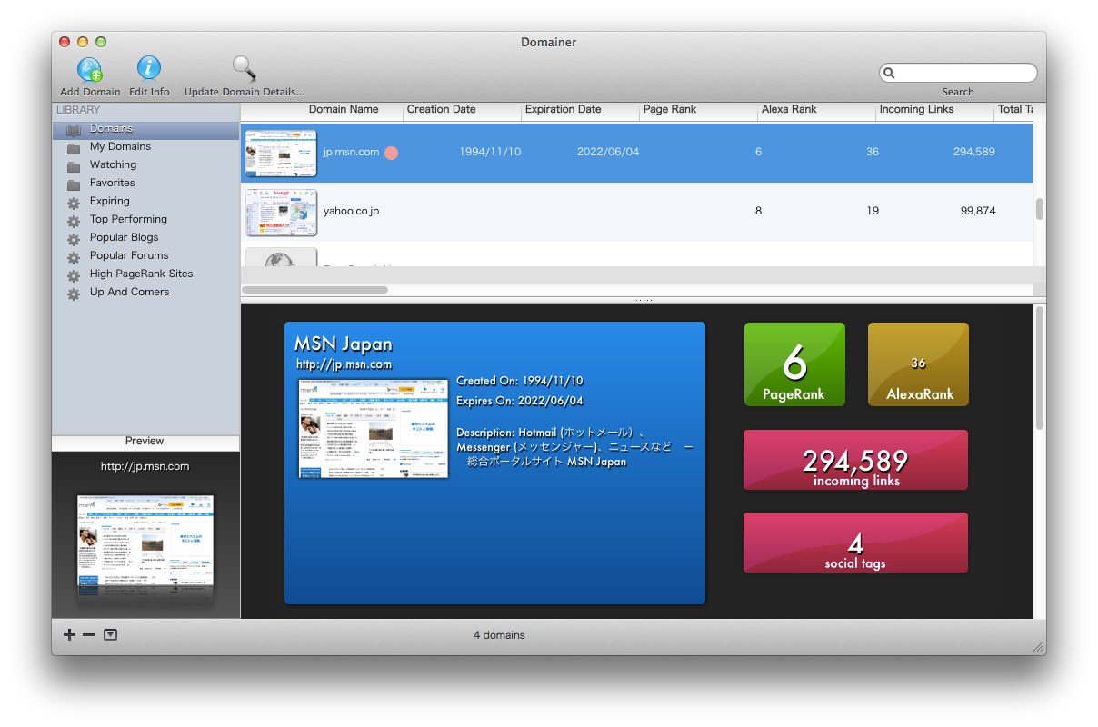 各ドメインのGoogle Page Rankや被リンクなどを一覧表示できるSEO Tool 「Domainer for Mac」が無料セール中です。詳細は以下から。