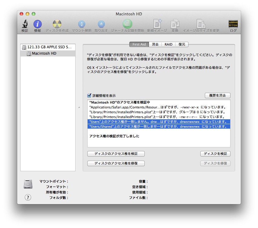 3.ディスクユーティリティでアクセス権の修復。(*再起動後/Usersを確認してみてください)