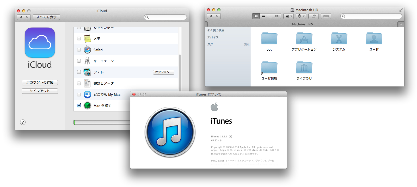 iTunes 11.2.1にアップデート後「Macを探す」を有効にし再起動しても/Usersディレクトリの非表示や