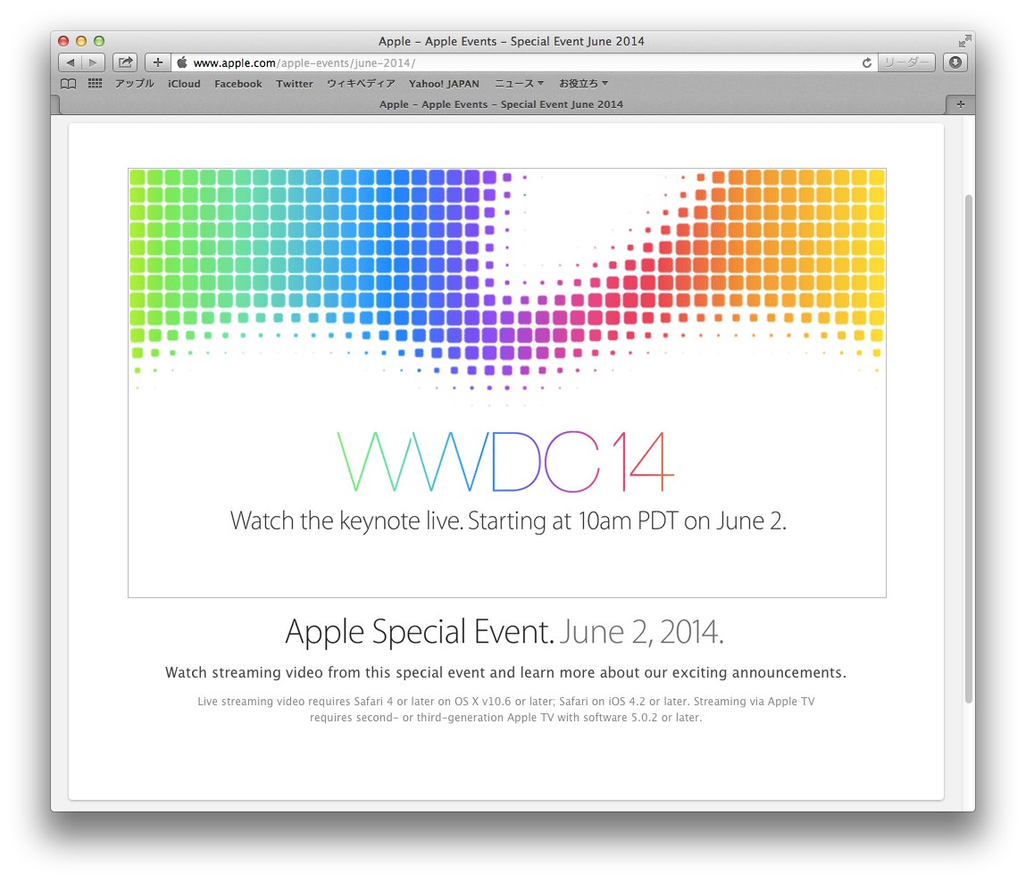 また、既にWWDC 2014の基調講演中継を表明するサイトも現れているようです。