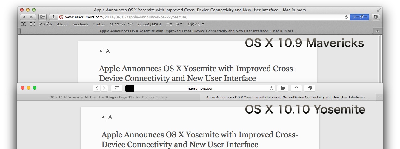 ・OS X 10.10 Yosemiteに搭載される次世代Safariのスマート検索フィールド(アドレスバー)はiOS 7のMobile Safariの様にドメイン名のみの表示になる?![]()
