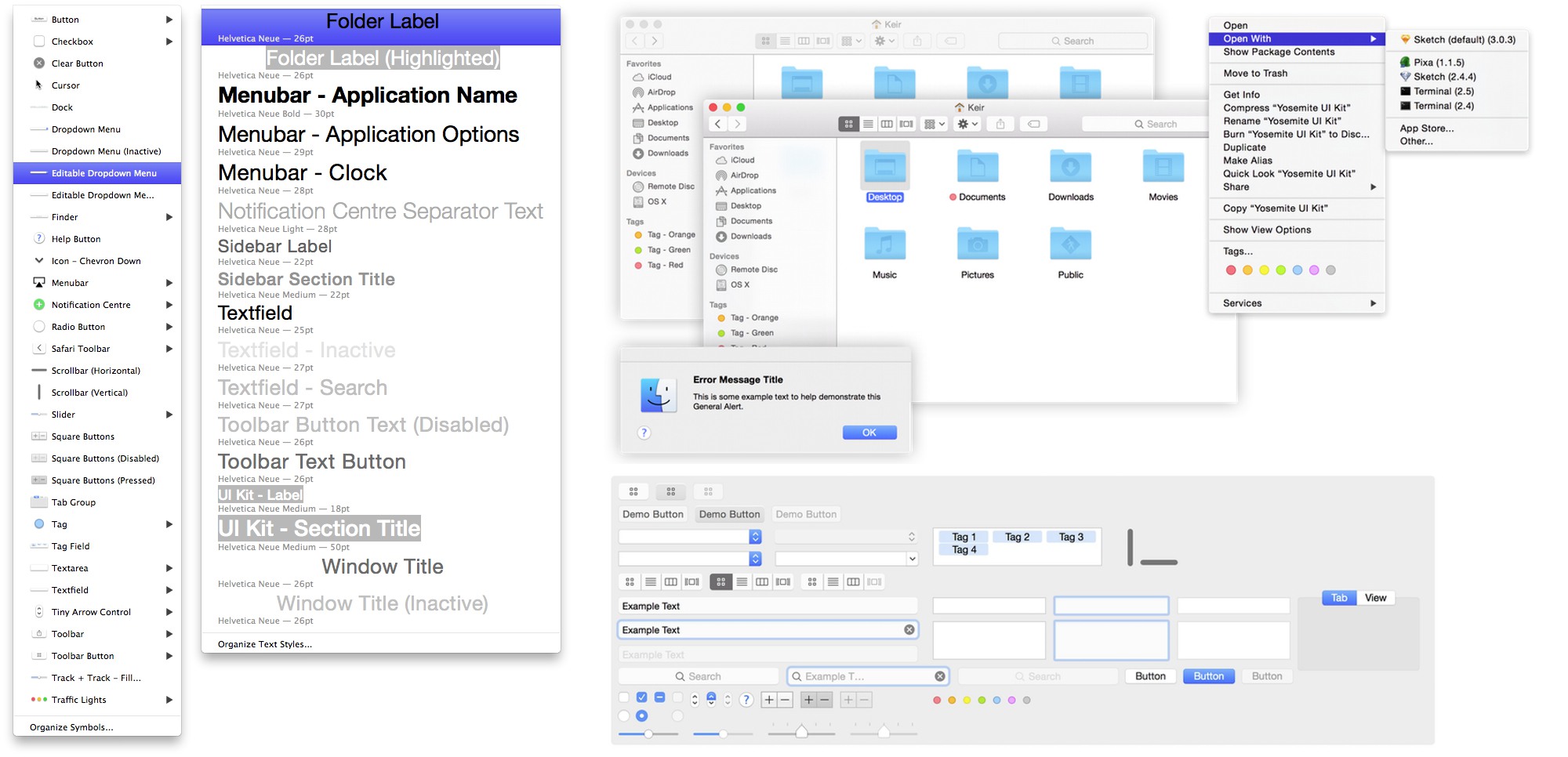 ・Yosemite UI Kit – OS X Yosemite UI Kit built for Sketch