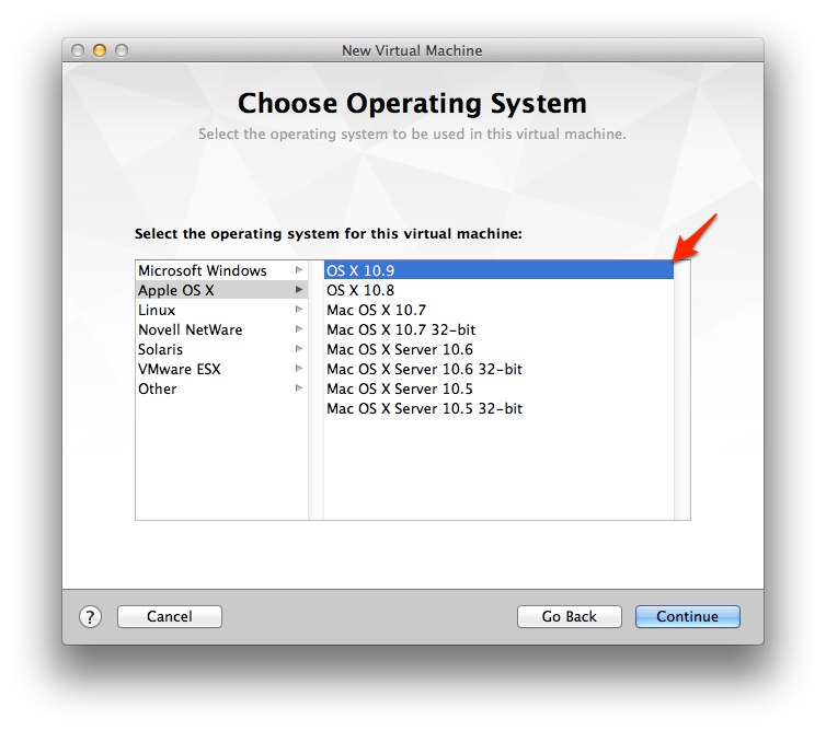 Choose Operating Systemで「OS X 10.9」を選択。