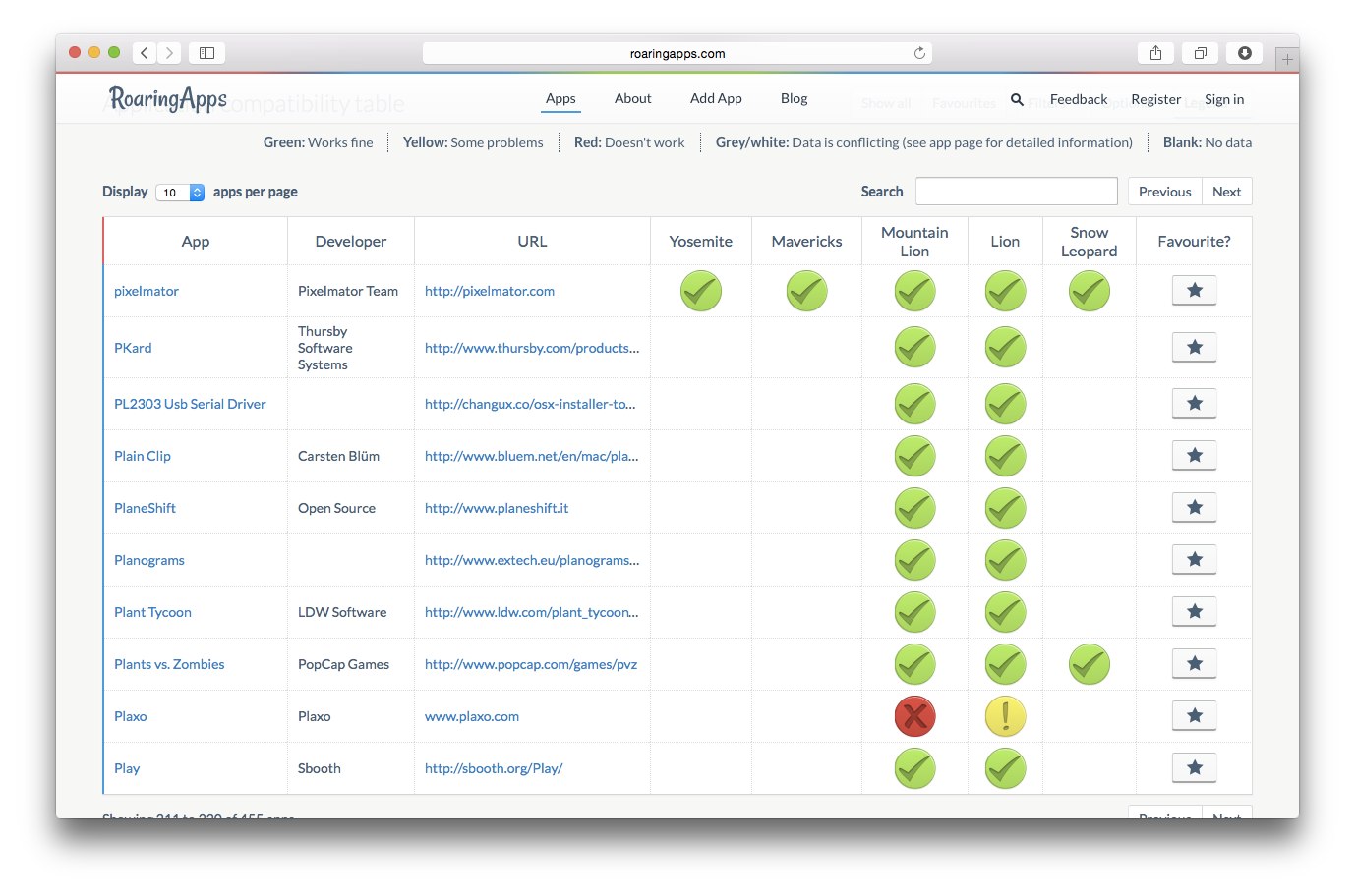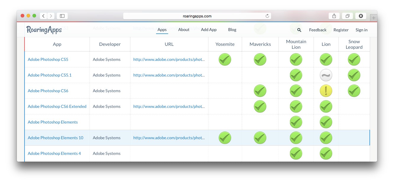 まだDeveloper Preview段階のOS X 10.10 Yosemiteですが、(一部 kextの変更を許していない事もあり)YosemiteにアップデートしたMacで動作しないアプリが出ているようで、海外のThreadでも動作状況確認リストが上がっていますが、OS X のバージョン別にアプリの動作確認をチェックできるサイト「RoaringApps」がYosemiteとiOS 8に対応したそうです。