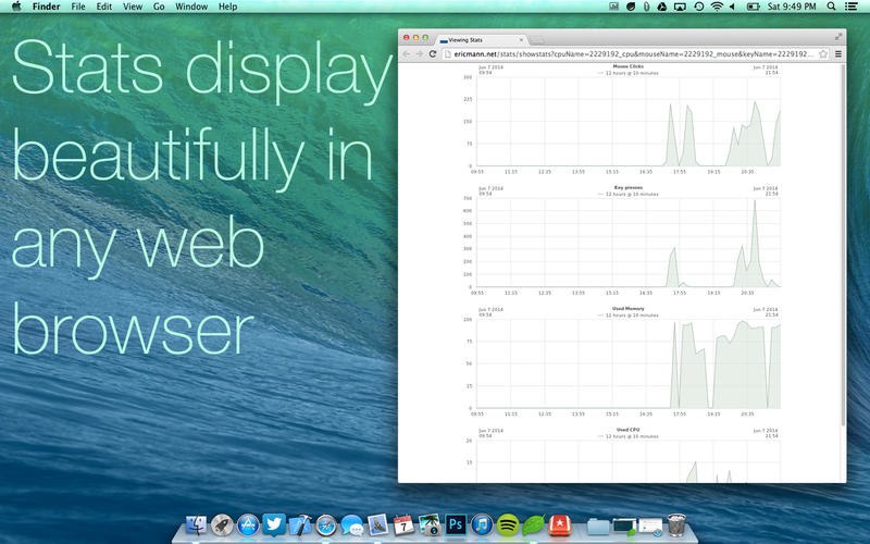 StatsはMacのCPU、メモリの使用履歴、マウスのクリック数、キーボードを押した数をWeb上で閲覧できるモニタリングアプリです。