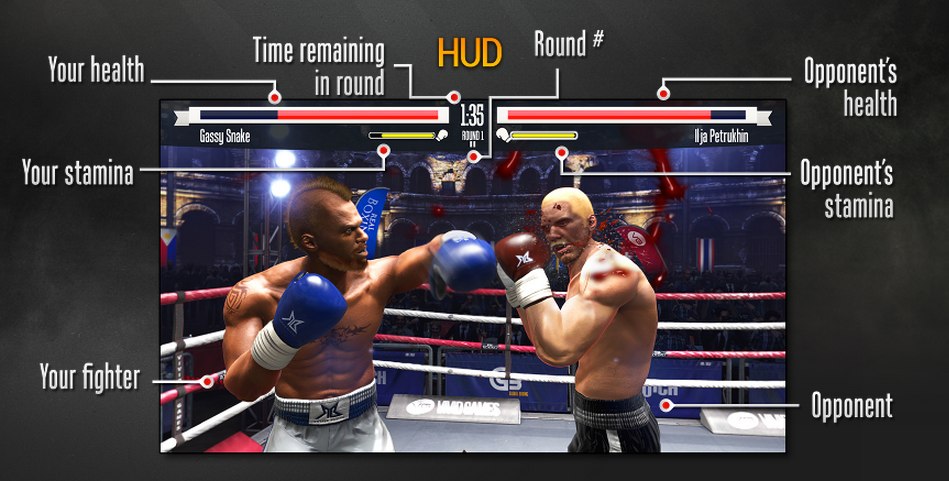 試合ルール自体は本物のボクシングと同じで、1ラウンド1, 2, 3分の3, 6, 12ラウンドが選択できスタミナや体力はゲージで表示されます。