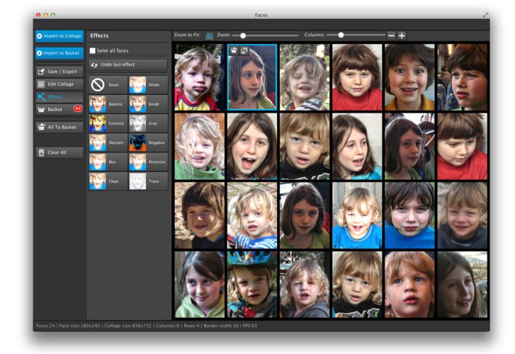 Facesは集合写真から人の顔だけを抽出してエフェクトをかけたり、リサイズして保存したり出来るアプリです。