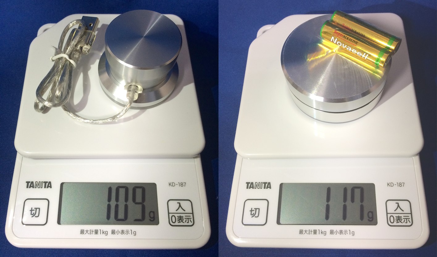 重さはUSB版が109g(USBケーブル含む)で Bluetooth版が117g(単4乾電池含む)となっており、それほど違いは無いようです。
