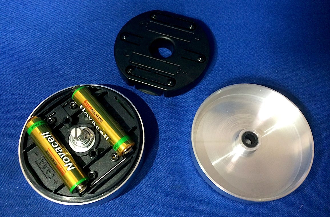 Bluetooth版はUSB版よりノブ(直径)が2cm程大きくなっています、これは中に単4乾電池を入れる都合上これ以下に設計できないようで、電池はノブを上にあげて電池カバーを外しボリュームつまみの両脇に入れるようになっています。