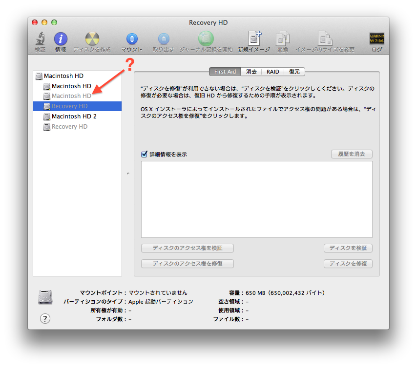 OS X YosemiteをインストールしたMacをBoot時にOptionキーを押し、リカバリー領域からリカバリーしようとした場合、OS X Yosemiteのリカバリー領域が見えずディスクユーティリティのデバッグモードで確認しても「Recovery HD」の他に「Macintosh HD x」が出現しリカバリー時にこちらが認識されてしまうという現象です。