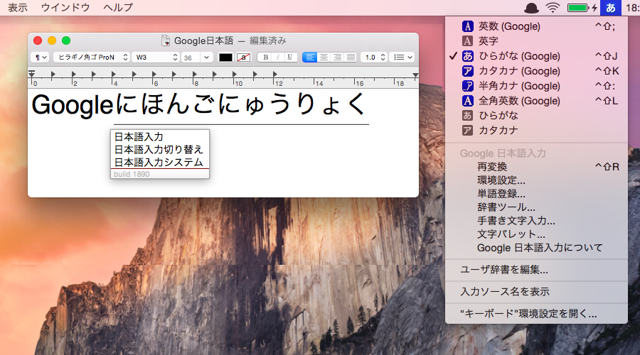OS X Yosemite Public Beta版で動作する「Google 日本語入力 開発版 (Ver. 1.13.1890.101) 」がリリースされています。詳細は以下から。