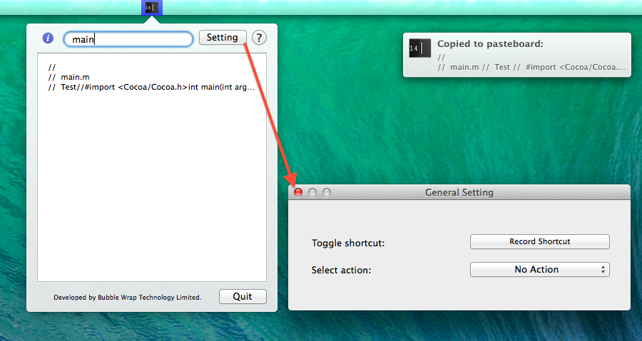 その他、クリップボードに保存されたテキストの検索やショートカットキー設定、クリップボード洗濯時のアクション設定、通知センター表示などが可能です。