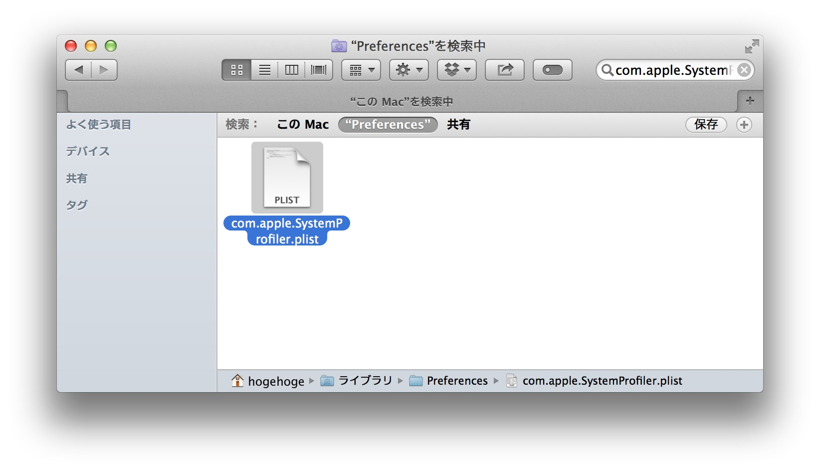 4.”com.apple.SystemProfiler.plist”ファイルを探して削除&再起動