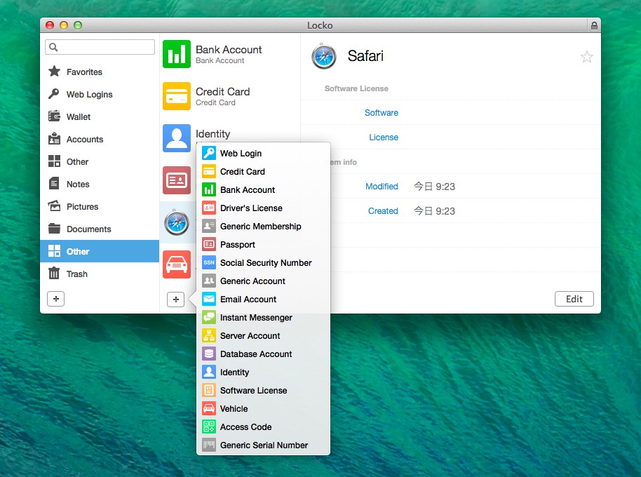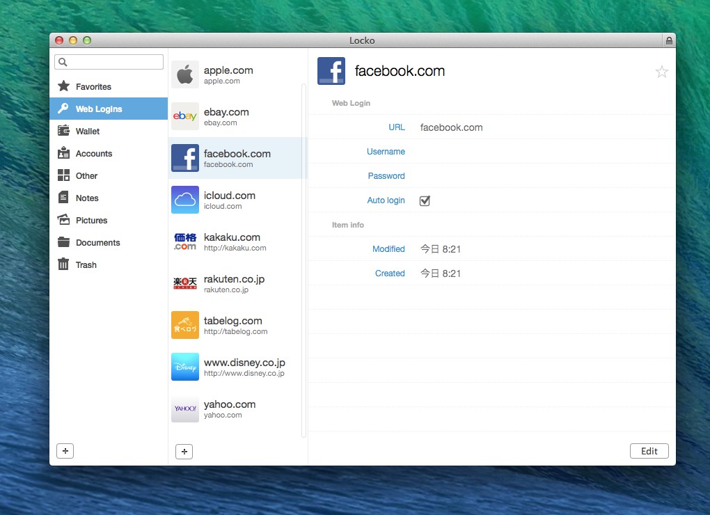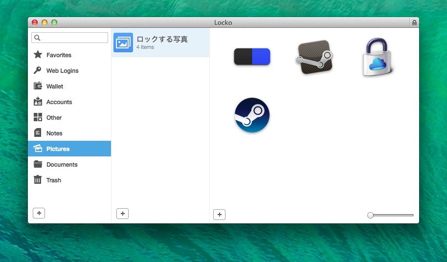 「Locko」は1Passwordの様なパスワードマネージャーアプリで、パスワードの他にもドキュメントやファイルロック機能などを備えています。開発元のBinaryNightsはハンガリーのアプリ作成会社で「Locko」の他に2ペインFTPアプリ「ForkLift2」なども作成、販売しています。