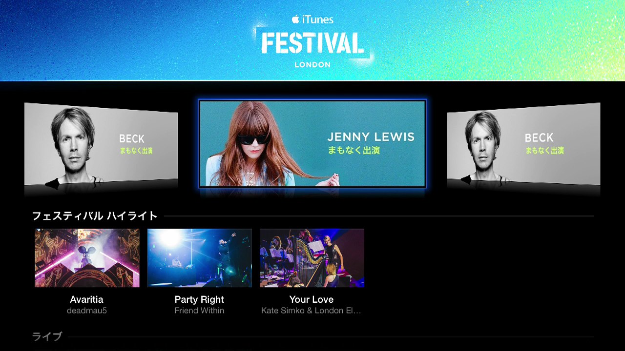 Macの場合はiTunesで、iOSデバイスの場合はiTunes Storeアプリ、AppleTVの場合は専用チャンネルから閲覧可能で、AppleTVの場合はiTunes Festivalのスナップショットをスクリーンセーバーにする機能もあるようです。