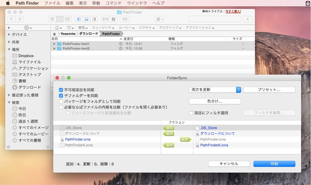 OS X Yosemiteのリリースに合わせメジャーアップデートしたPath Finder 7では、ファイルコピー/移動エンジンやアイコンを一新し、新たにDropboxフォルダ対応やFolderSync機能を搭載しています。