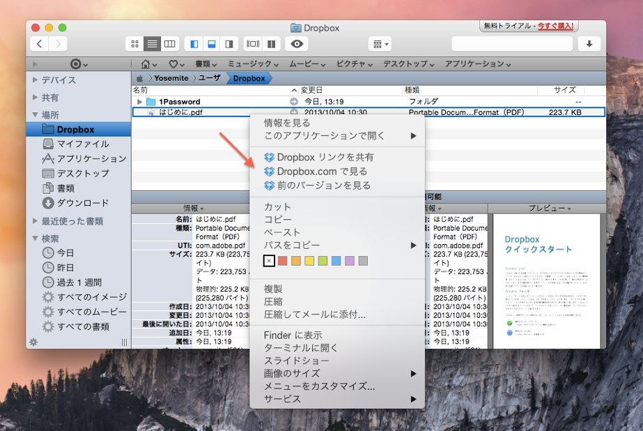 Path Finder 7では、Dropboxがインストールされている場合は自動的にDropboxフォルダにリンクし、
