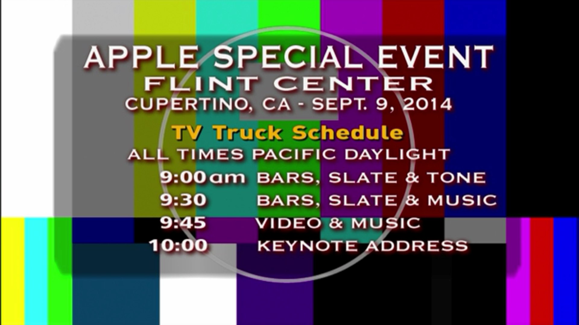 Just got this one … good job, Apple. I haven’t seen the color bar on a screen since 1983. #AppleLive http://t.co/WcFilyZUEp