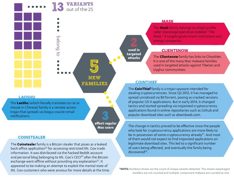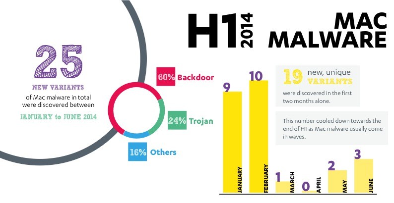 F-Secureが2014年上半期にMacをターゲットとした25種類のマルウェアを発見したとレポートしています。詳細は以下から。