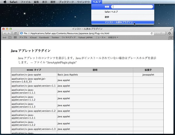 プラグインのインストール場所は「/Library/Internet Plug-Ins/」or「~/Library/Internet Plug-Ins/」なのでこれを削除してやればJavaAppletが使用できなくなります。 OS X10.7.3以上の方はアップデートをどうぞ。