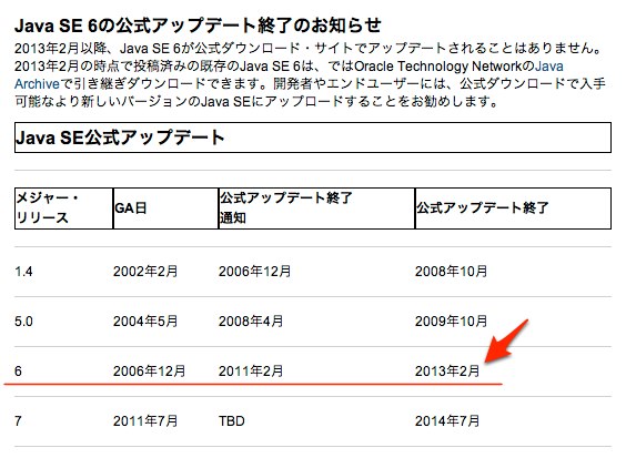Java 6のセキュリティサポートは伸びに伸び、たしか今年の2月か3月でようやく終了予定。