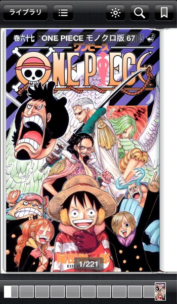 iPadだと見開きにしても読みやすいです。ONE PIECEの場合、コミック版が420円、Kindle版が368円、iBookStoreだと350円なので少しお得かもしれません。