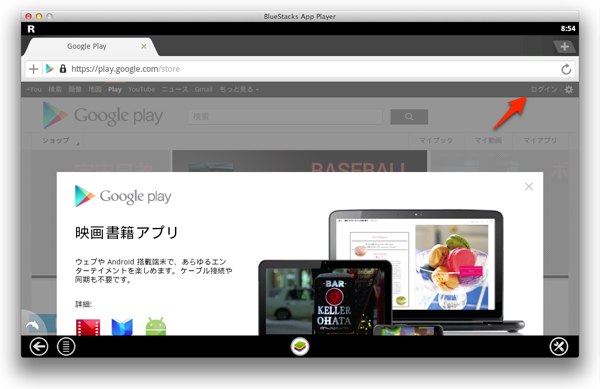 ブラウザでPlay Store(https://play.google.com/store)にアクセスしてBlueStacksに設定したGoogleアカウントを入力。