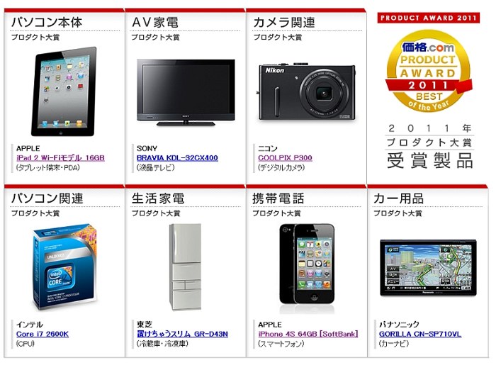 価格.com - 価格.comプロダクトアワード2012 パソコン本体カテゴリ プロダクト大賞