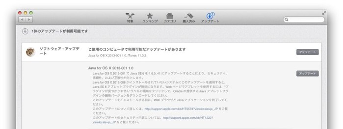 Java for Mac OS X 10.6 アップデート 13 で Java SE 6 を 1.6.0_41 にアップデートすることにより、セキュリティ、信頼性、および互換性が向上します。