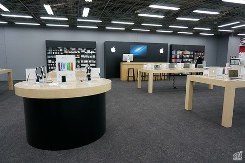 「一等地」で早くも売上げ3倍これまでは、「アップルコーナー」として販売してきたが、製品をディスプレイするテーブルや配置など、アップルのレギュレーションにそろえた「Appleショップ」へと変更した。