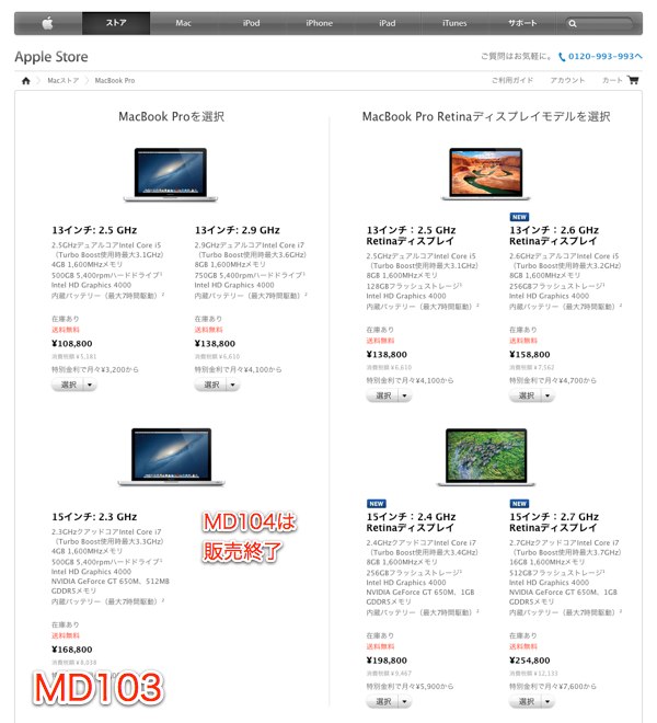 CTOでほぼ同じ価格でMD104にできるとはいえなんか、さみしい