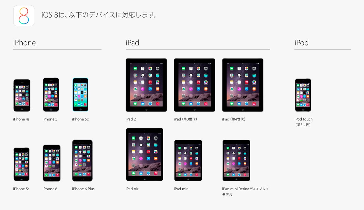 9月18日2時(JST)AppleがiOS 8をリリースしました。対応iOSデバイスは以下の通り。