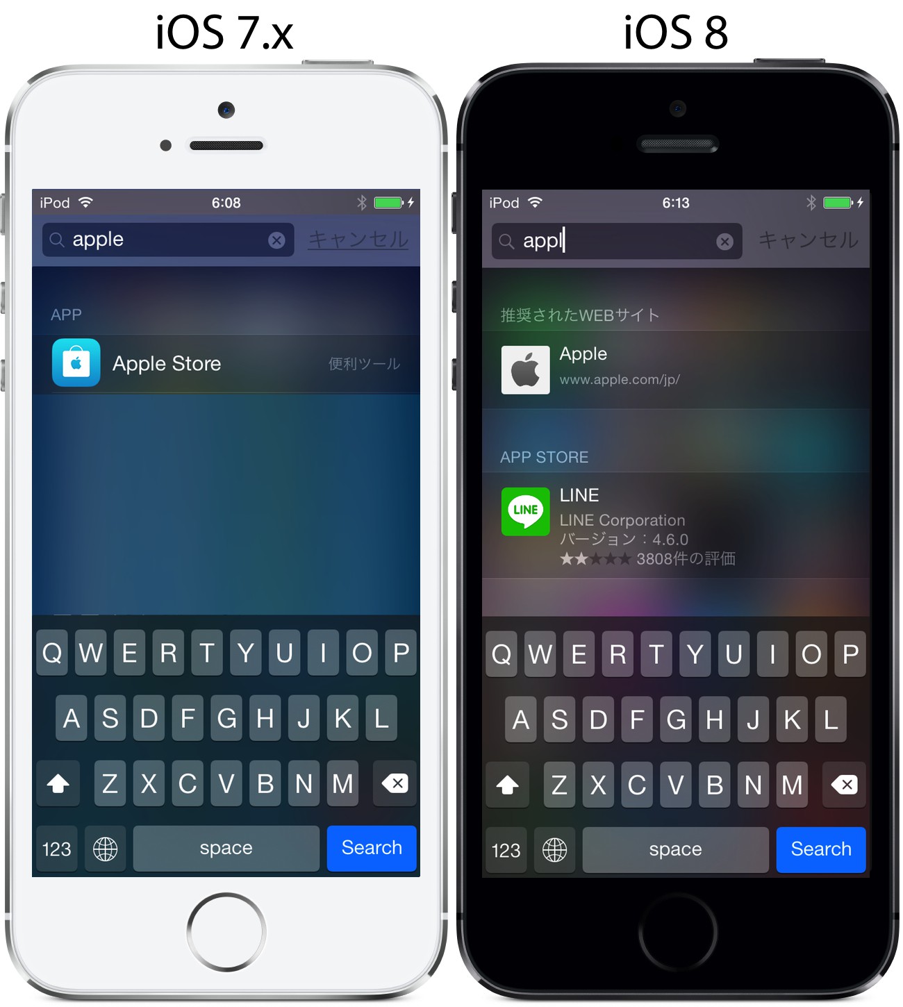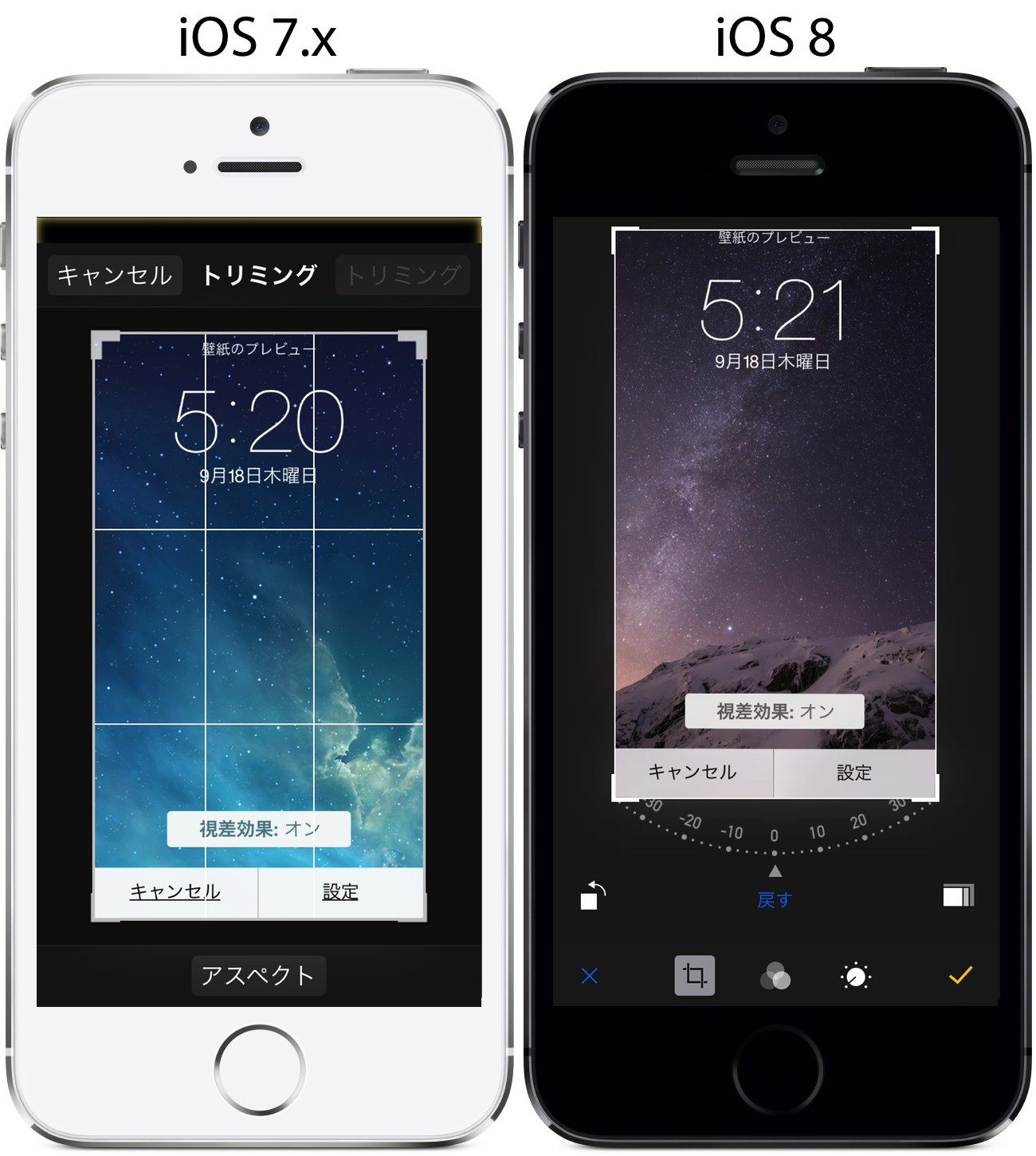 iOS 7.xとiOS 8のデザイン変更点まとめです。詳細は以下から。