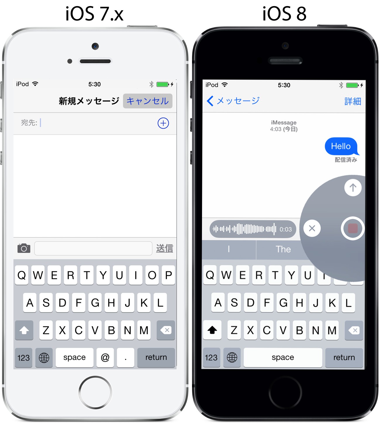 メッセージアプリにはボイスメッセージとビデオメッセージ機能が追加され、マイクやビデオのアイコンを押しっぱなしにするとボイスメッセージコントローラーが現れ、音声やビデオ・写真が送信できます。