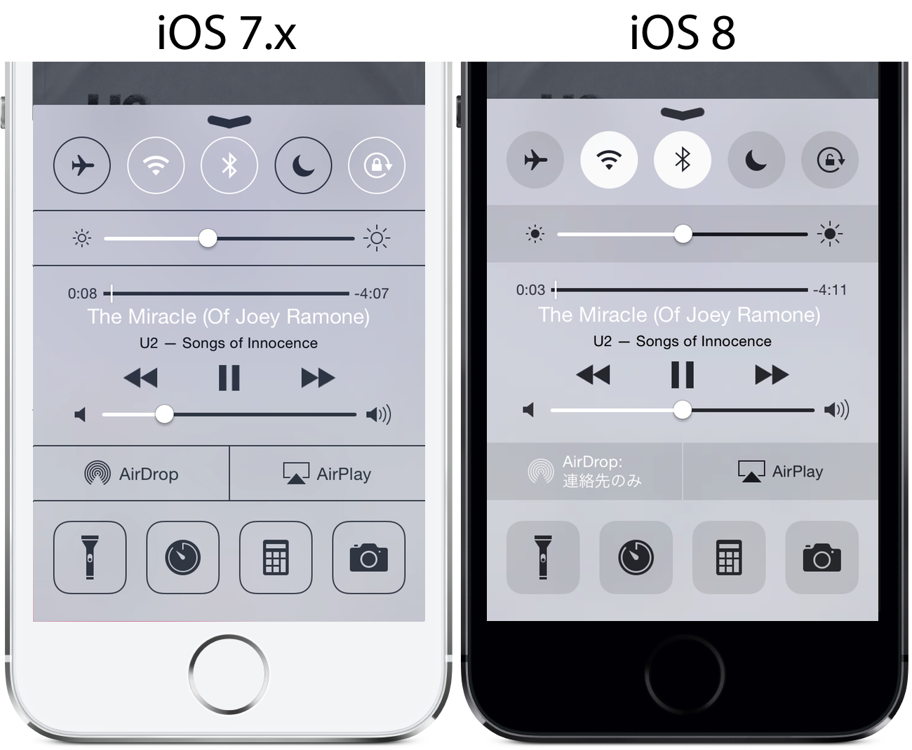 コントロールセンターのデザインも変更され、WiFiやBluetoothなどのボタンが反転され認識しやすくなっています。