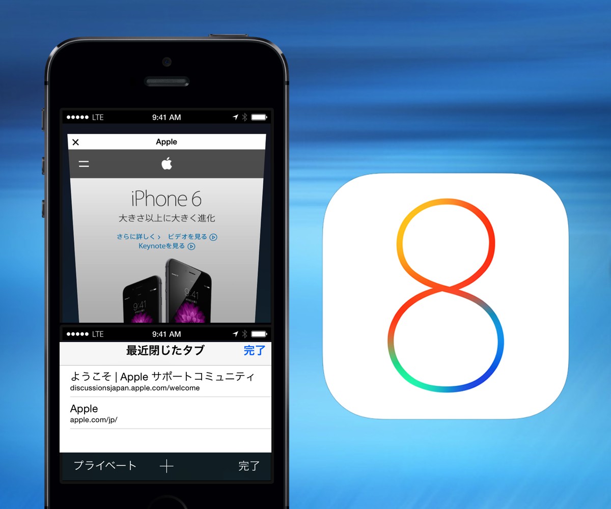 WebGLやCSS ShapesをサポートしたiOS 8のMobile Safari 8ですが、iPad版Safari同様「閉じたタブ」の復元機能も実装されてたようです。
