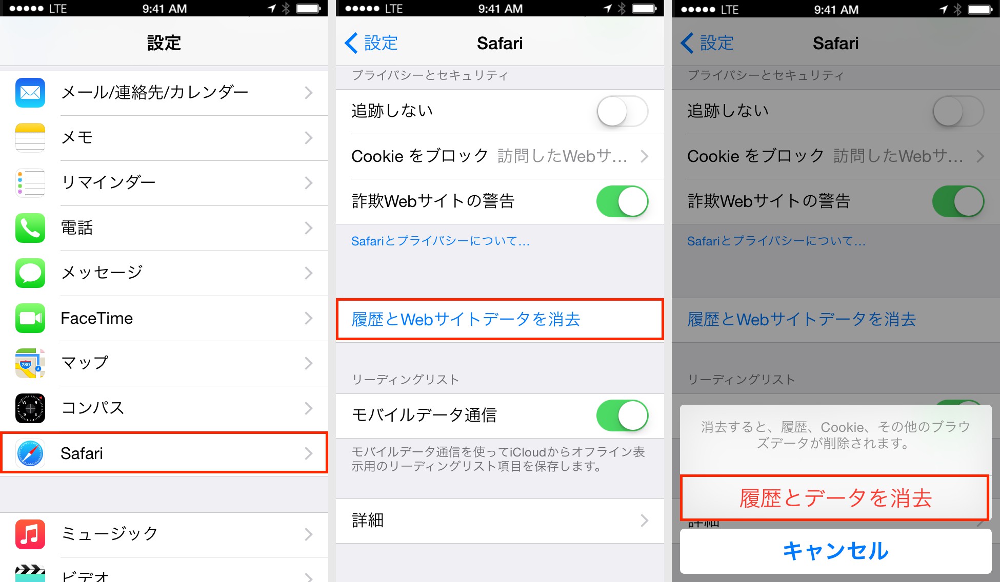 ここに出てくる「閉じたタブの履歴」は設定アプリの[Safari] > [履歴とWebサイトデータを消去]から消去することが出来ます。