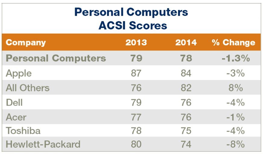 #Apple retains PC satisfaction crown despite drop in score. #Dell, #HP and other #Windows-based PCs also slide. http://t.co/RChBzbg1Fr