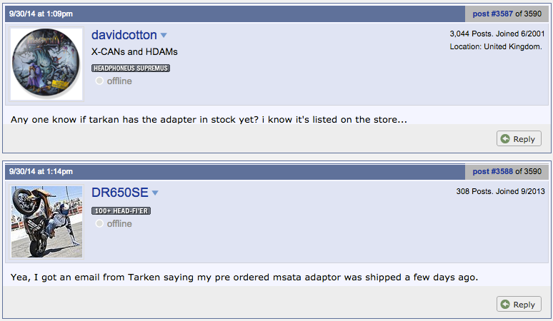 価格は40ドルで、Audiophiles(オーディオマニア)の巣窟 head-fi.orgのスレッドには既に注文した方や在庫を心配している方が多数いるようですが、プレオーダーした人たちには既に出荷が開始されており、在庫もあるようです。