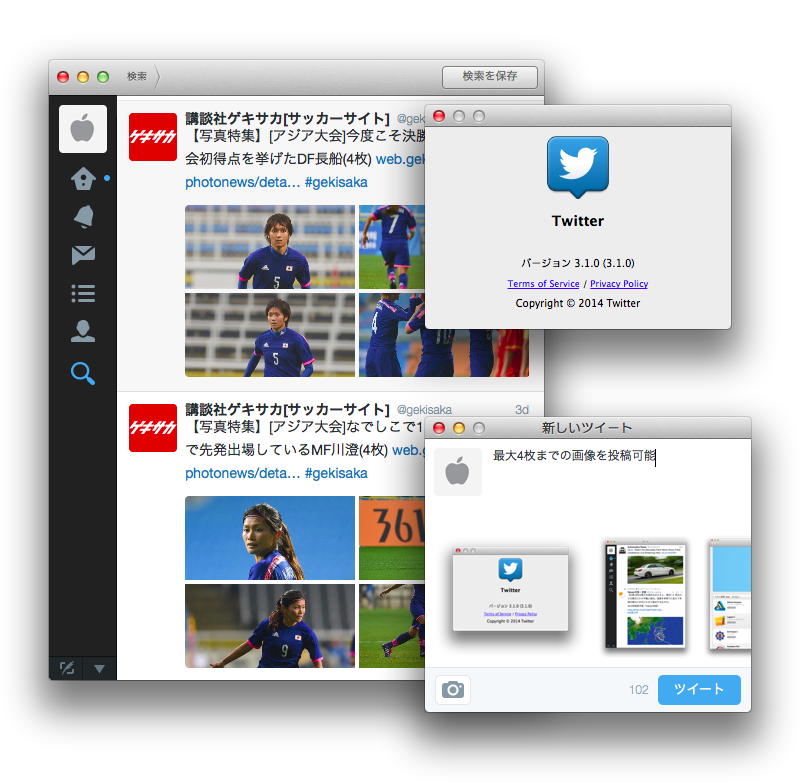 2013年 12月にv3.0(v3.0.1)にアップデートして以来しばらくアップデートのなかったTwitter for Macがv3.1をリリースしています。