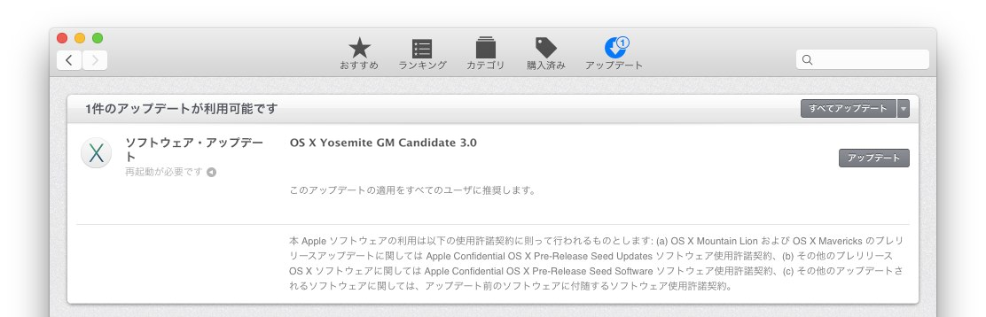 Appleが新たにOS X Yosemite GMを公開しています。詳細は以下から。