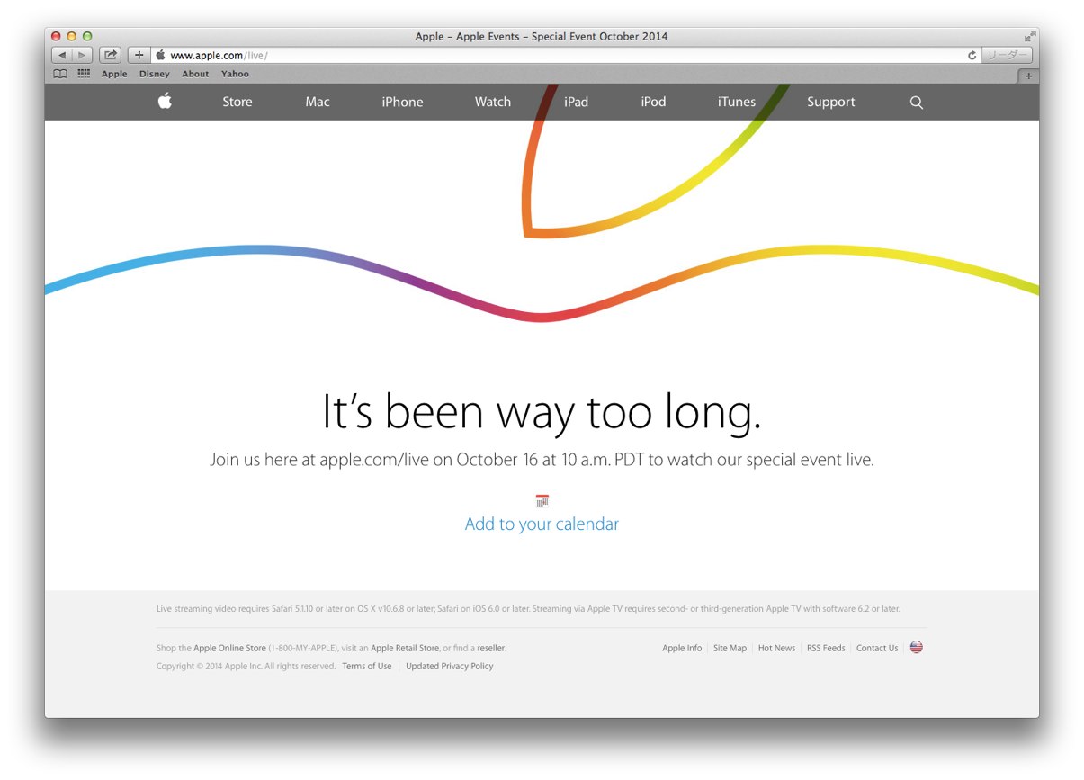 Appleが10月16日(日本時間17日早朝)のSpecial Eventをライブ中継するそうです。詳細は以下から。