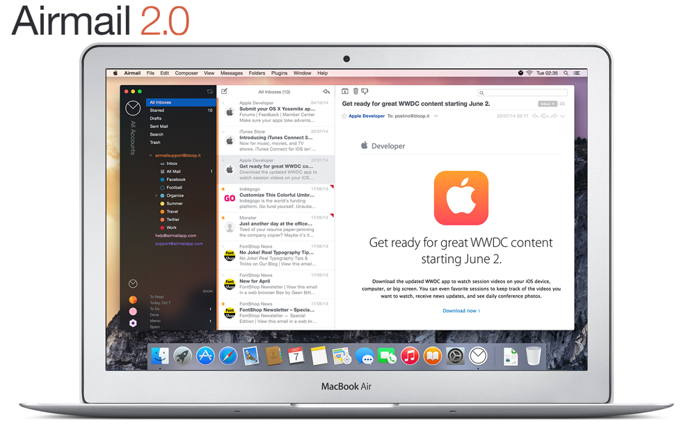 人気メールクライアントAirMailが「Air Mail 2.0」をリリースしています。詳細は以下から。