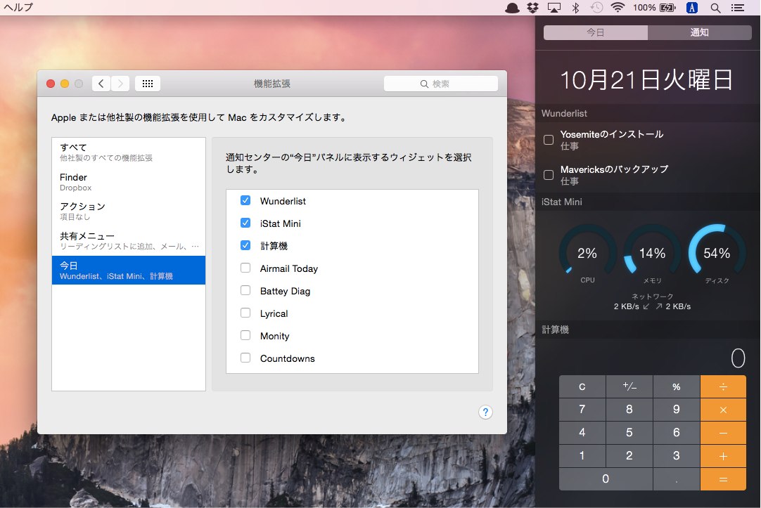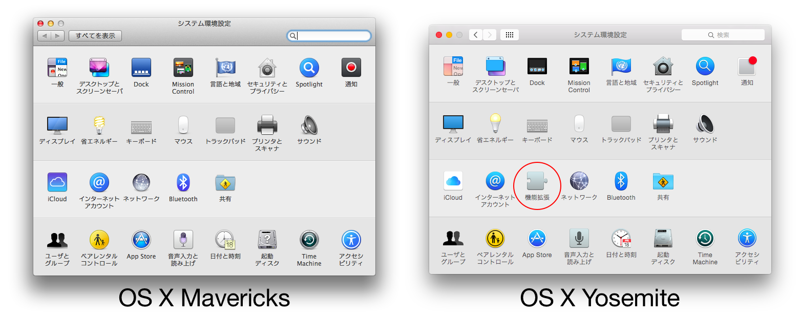 OS X Yosemiteのシステム環境設定に追加された「機能拡張」のまとめです。詳細は以下から。