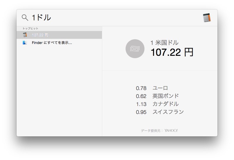 OS X YosemiteからSpotlightに搭載された「単位」機能のまとめです。詳細は以下から。