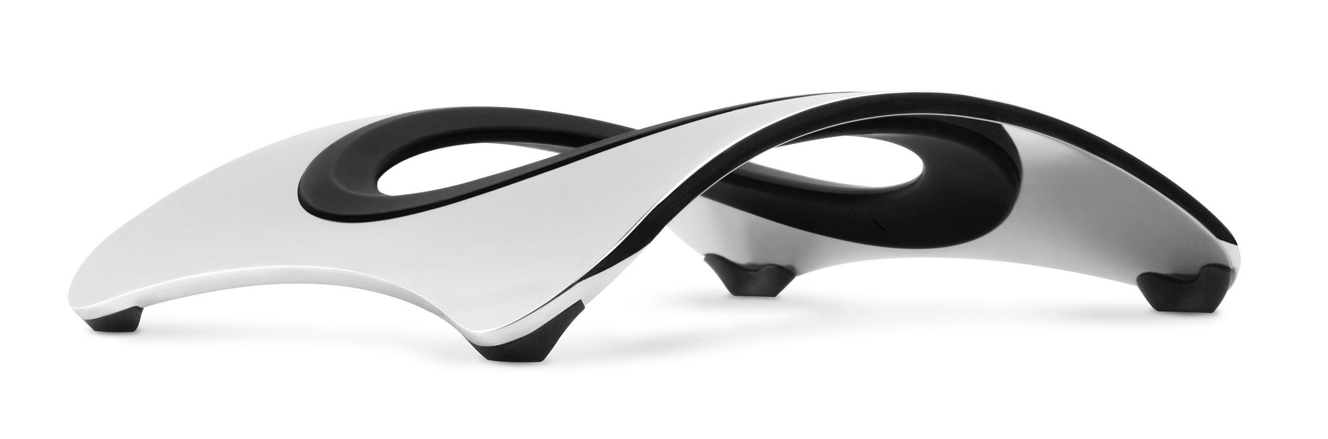 素材はスチール製で外側はクロームコーティングが施され、MacProと接する場所と足にはシリコンが採用されており、