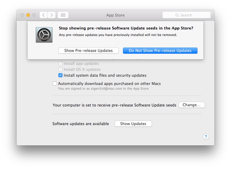 Pre-Release OS X Update Seedを止める方法