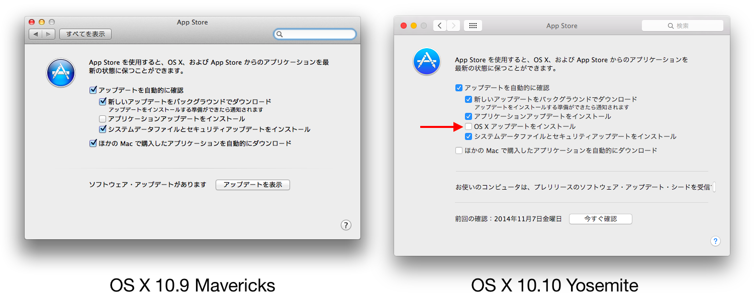 OS X YosemiteではOS X のアップデートも自動的にインストールされるというオプションが付いています。詳細は以下から。