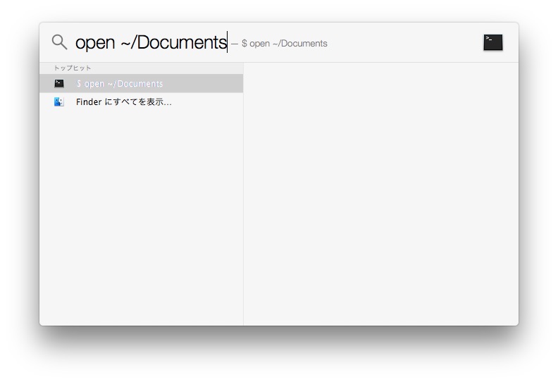 ”Terminal”プラグインはSpotlightからOS Xのコマンドを実行できます。